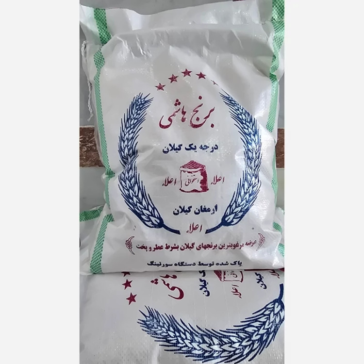 برنج هاشمی درجه یک اعلا استخوانی ارمغان گیلان پاک شده توسط دستگاه سورتینگ یک دست و خوش پخت
